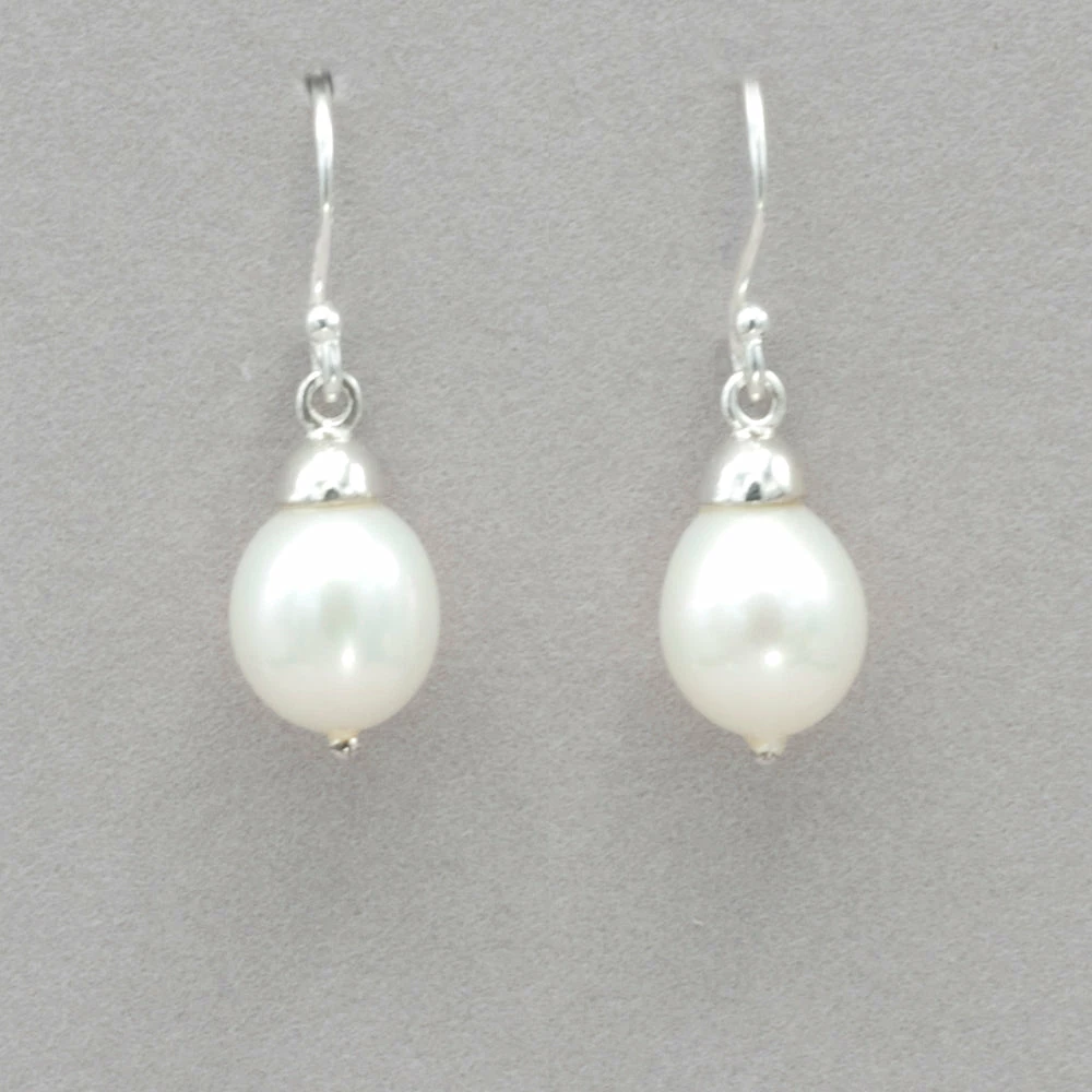 Freshwater pearl on a sterling silver ear wire. MeasuresΒ 1″ long.