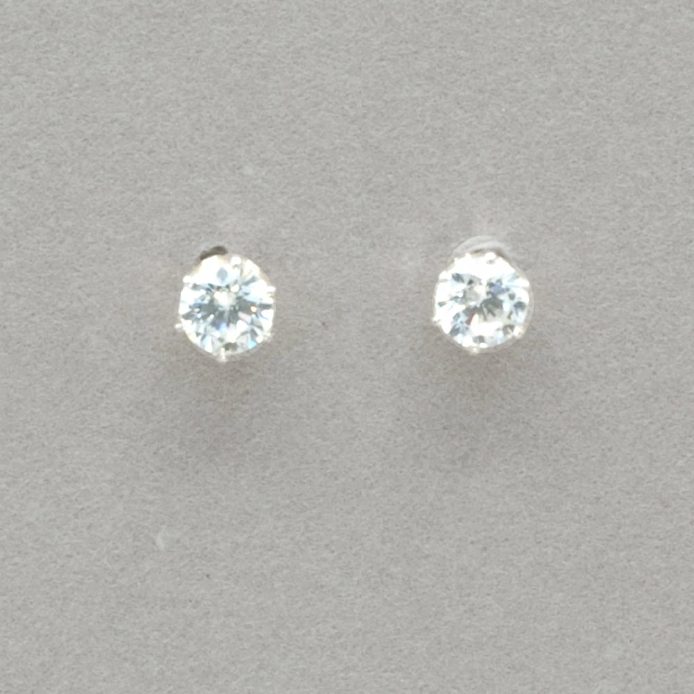 Faceted cubic zirconia (CZ) stud earrings. Sterling silver posts. Measures 4mm in diameter.