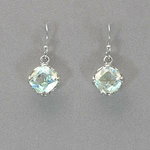 Faceted white topaz suspended from sterling silver ear wires. Measures 13/16″ L x 3/8″ W.