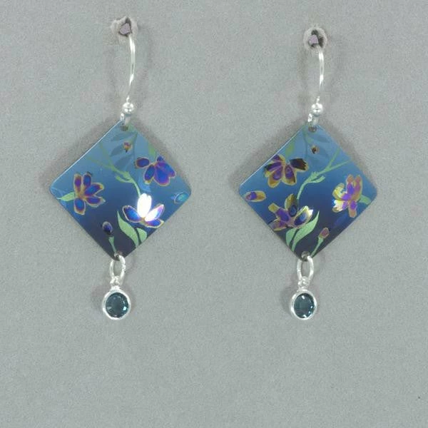 Niobium and Swarovski crystal on gold overlay or sterling silver ear wires. MeasuresΒ 1 5/8″ L x 3/4″ W.