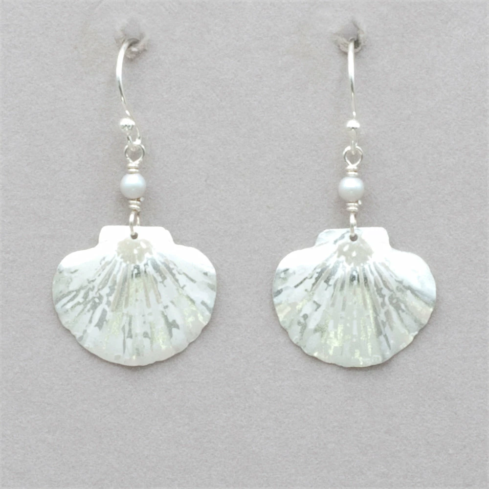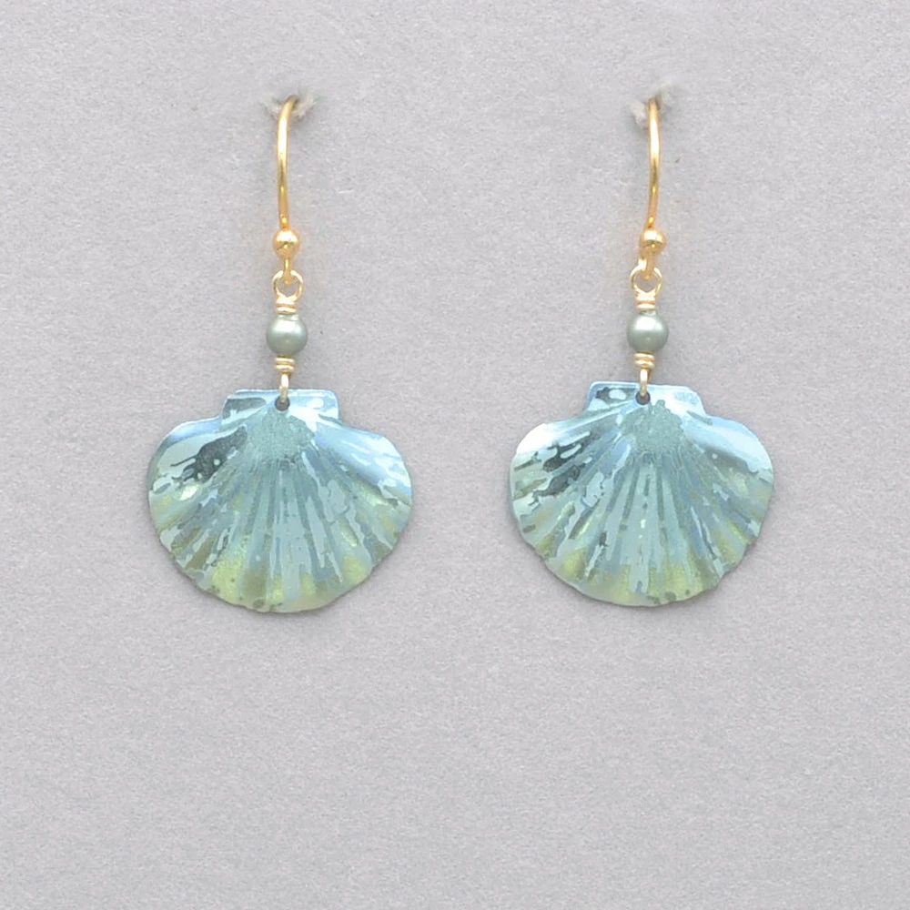 An iconic remembrance of the sea, our darling Shelby Earrings features a chic clam shell and dainty seed beads for a look that comes straight from a day on the coast. This elegant design makes for an easy wear-with-anything accent. Gold or silver overlay or niobium, with Swarovski crystal pearls, on gold overlay or sterling silver ear wires. Measures 1 1/2″ long by 3/4″ wide.