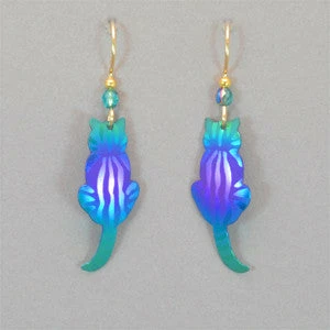 A purr-fect gift for the cat lover in your life! Niobium or gold filled and Bohemian glass with gold filled ear wires. Measures 1 3/4″ L. x 3/8″ W.