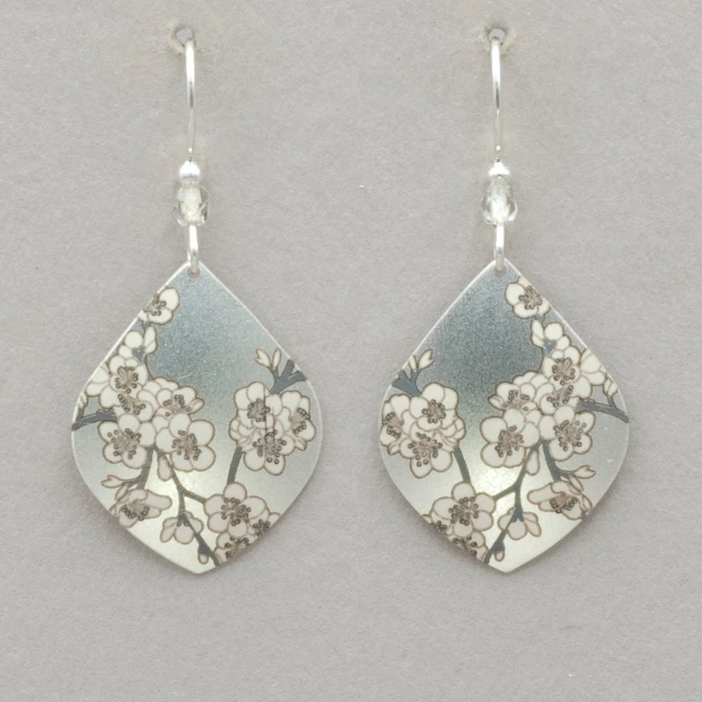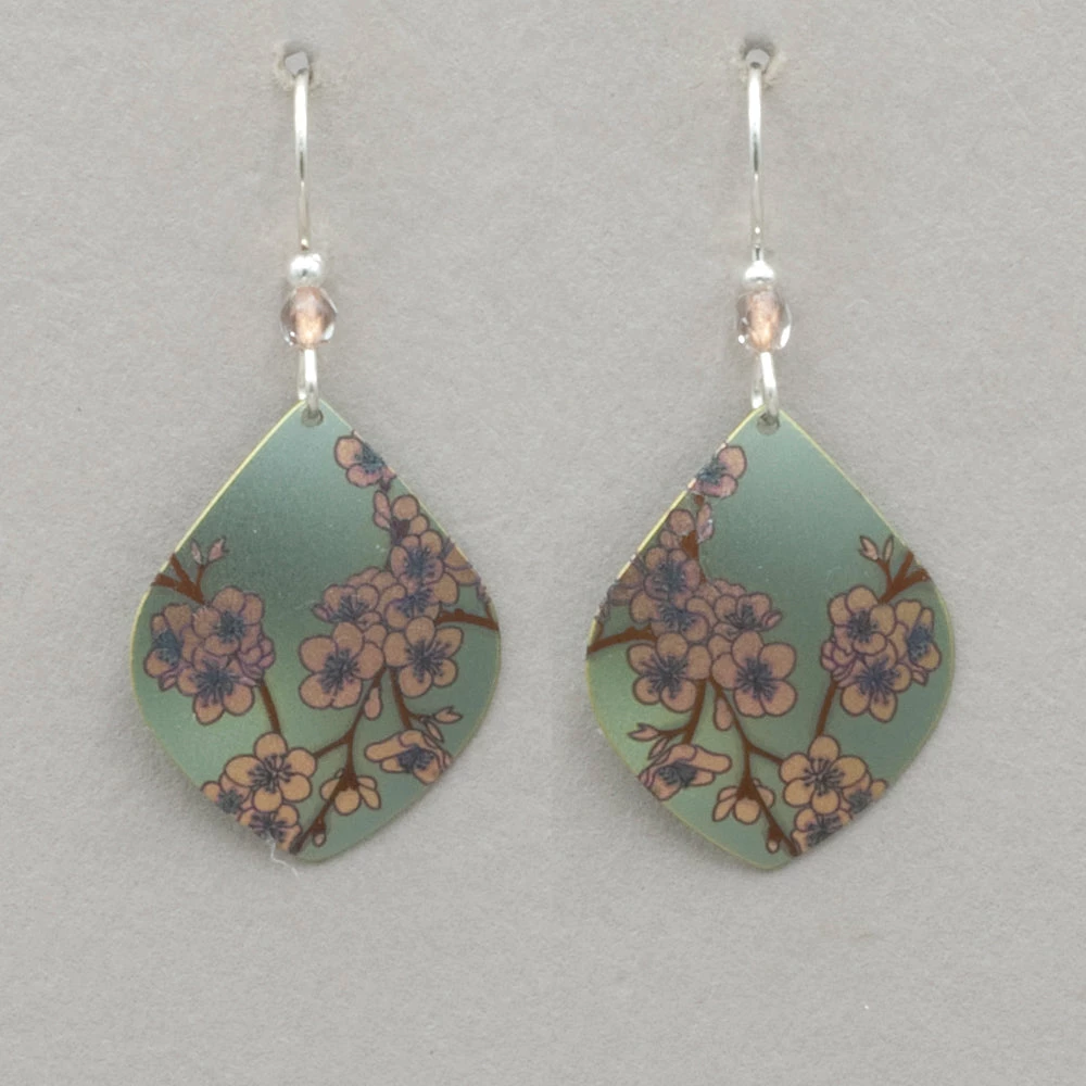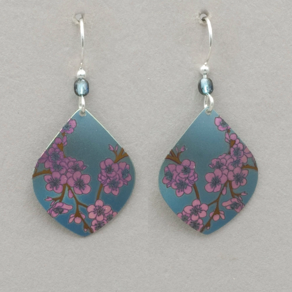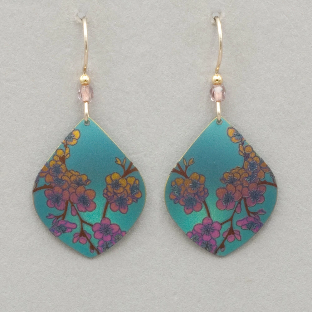 Take a walk among the cherry blossoms with our Spring in Bloom Earrings. Hand-painted boughs are brought to life in stunning detail, bursting with rich color and glossy shine. Niobium, sterling silver or gold filled on sterling silver or gold filled ear wires. Measures 1 5/8″ long by 3/4″ wide.