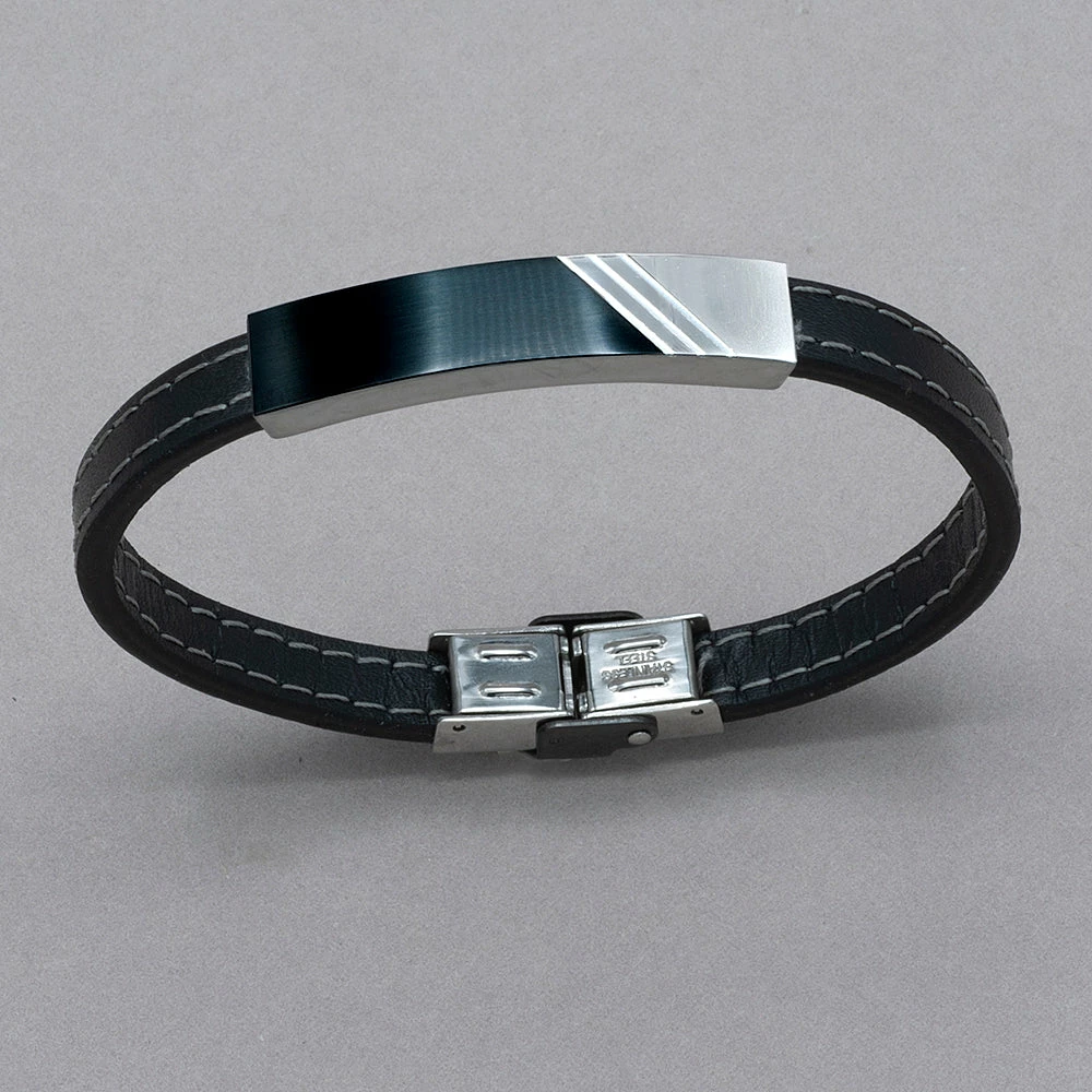 Buy ๐ Italgem Steel Bracelets Italgem Black Stainless Steel ID Plate Black Leather Bracelet ๐