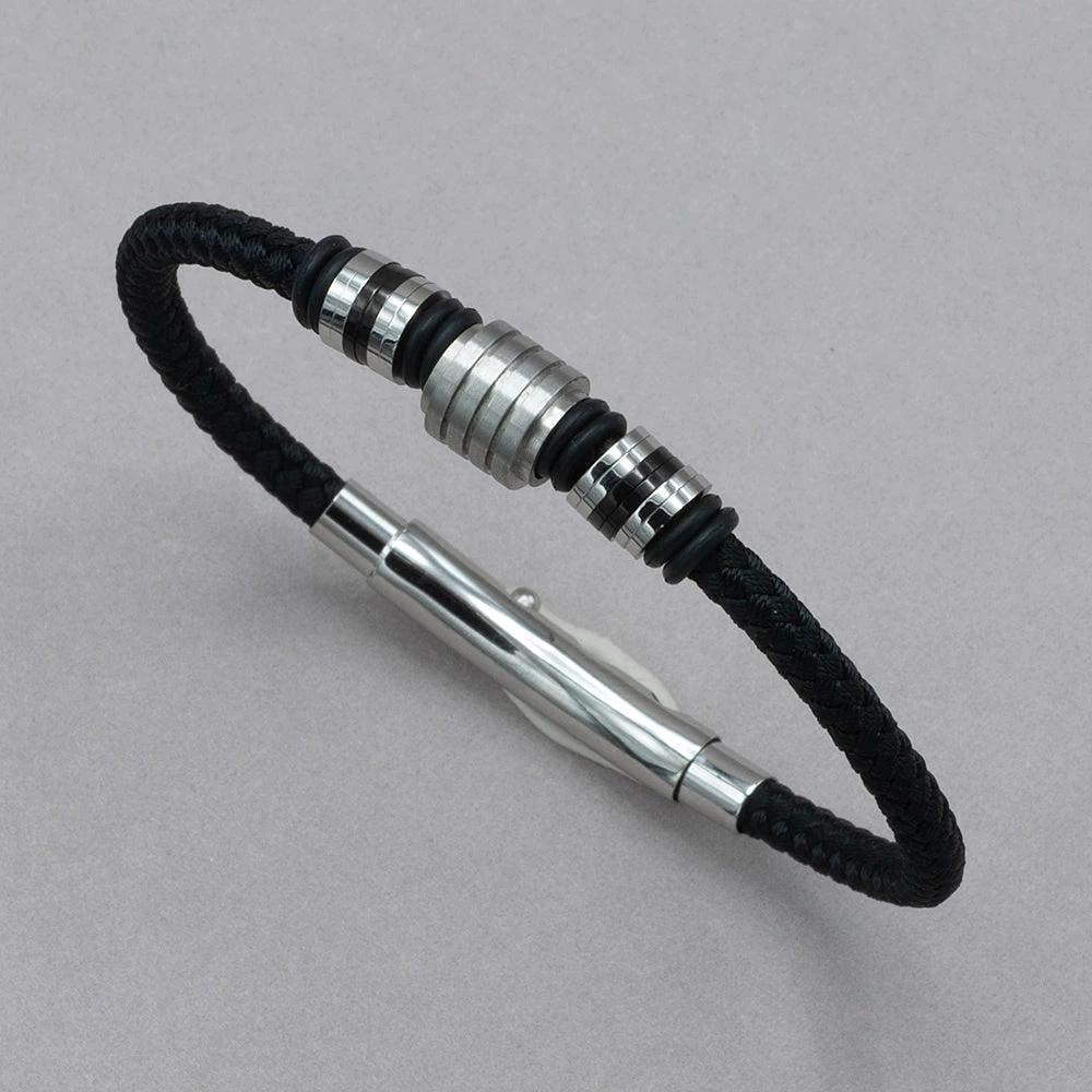 Budget ❤️ Italgem Steel Bracelets Italgem Stainless Steel And Black Nylon Bracelet 🔔