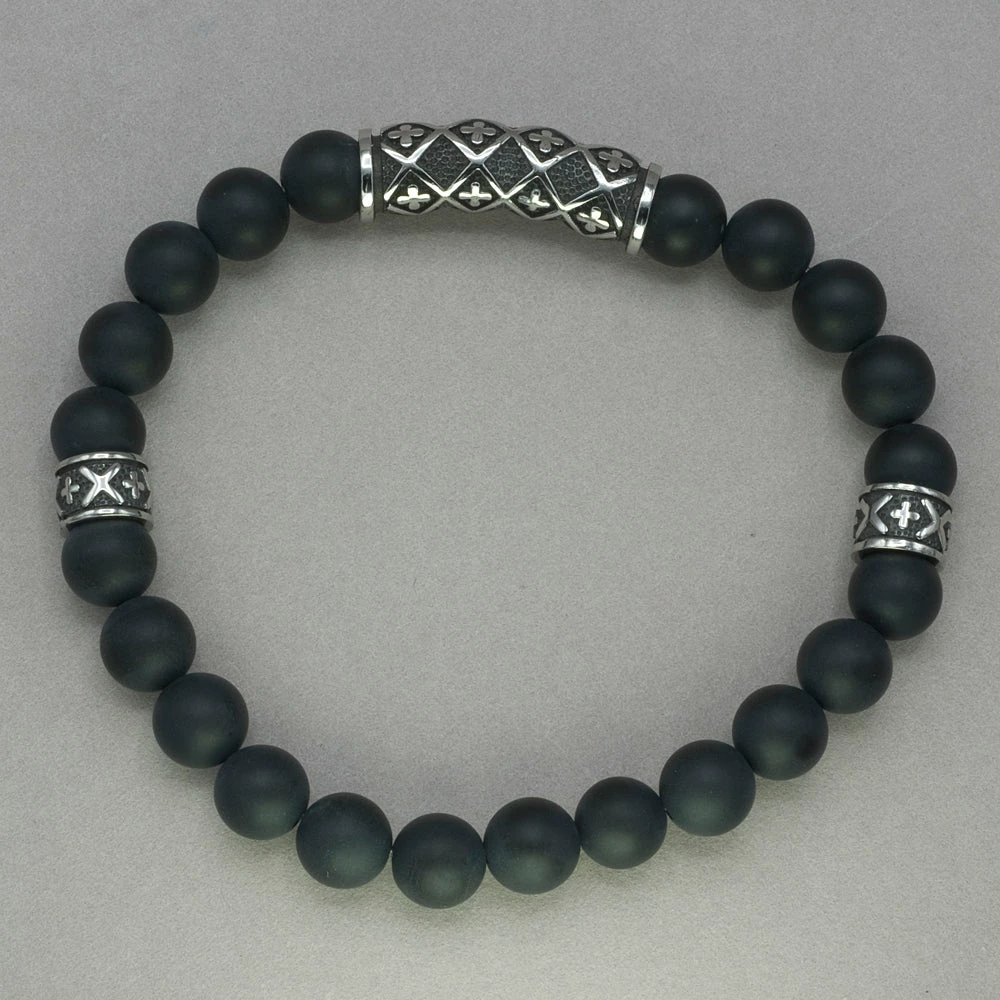 MatteΒ onyx bead with black IP stainless steelΒ cross design beads. Measures about 8.5″ around. ital bb 9