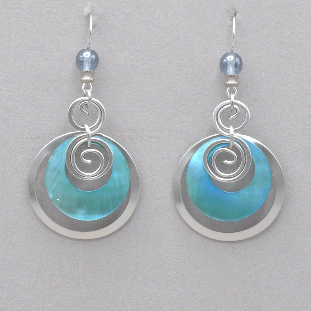 Gold or silver toned plated metal with an anti-tarnish coating, with mother of pearl and glass bead accents. Hypo-allergenic ear wires. Measures 2 1/2″ L x 1 1/8″ W. jmr 2280