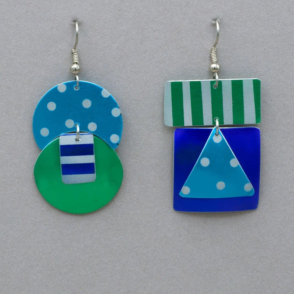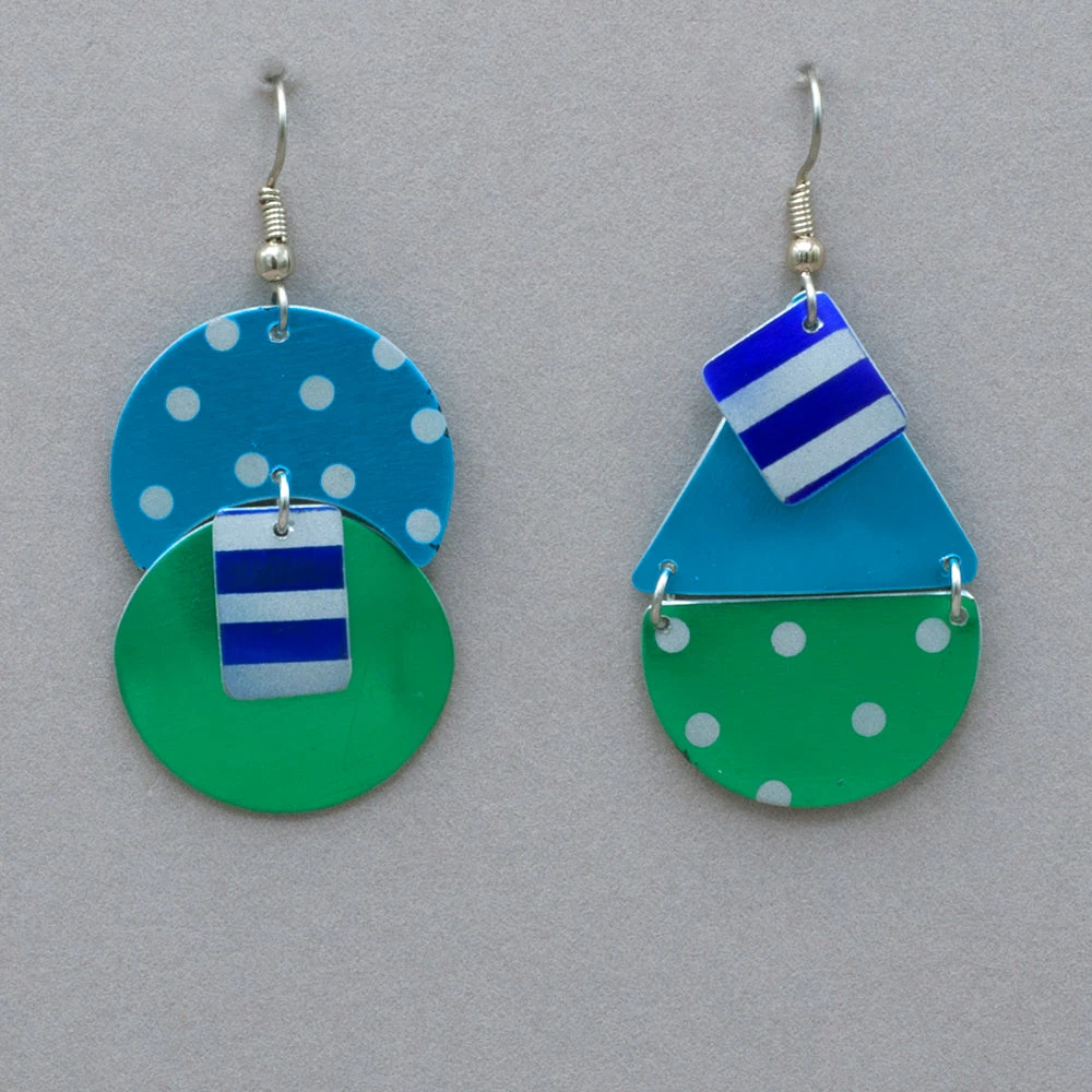 Anodized aluminum on surgical steel ear wires. Measures 2 1/8″ long by 1″ wide. sh 3csp